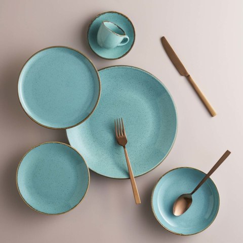 **Każdy element zastawy jest unikalny** Do barwienia produktów kolekcji Seasons Laguna wykorzystywane są naturalne barwniki, tlenki żelaza oraz ręczne techniki rzemieślnicze. Każdy element może inaczej reagować w procesie wypalania i szkliwienia, co skutkuje drobnymi różnicami w fakturze, tonacji i kolorze. Nie są to wady, lecz charakterystyczne cechy ręcznej produkcji i naturalnych materiałów.