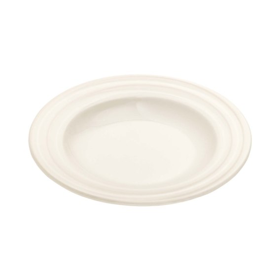 Wysokiej jakości porcelana o wzmocnionym szkliwie, w ciepłym odcieniu kości słoniowej. Posiada charakterystyczne przetłoczenie, uwypuklające kompozycję potrawy. Wzmocnione brzegi zapewniają trwałość, potwierdzona 5-letnią gwarancją na wyszczerbienia brzegów (wszystkie elementy płaskie).