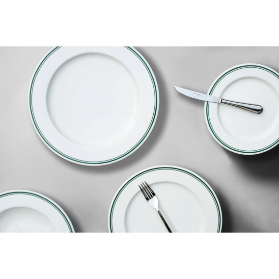 To idealny wybór zarówno do codziennego użytku w domu, jak i do profesjonalnej gastronomii. Naczynia można bezpiecznie myć w zmywarce oraz używać w kuchenkach mikrofalowych i piecach gastronomicznych. Zielony detal pięknie komponuje się z naturalnymi materiałami i różnorodnymi aranżacjami stołu – od klasycznych po nowoczesne.