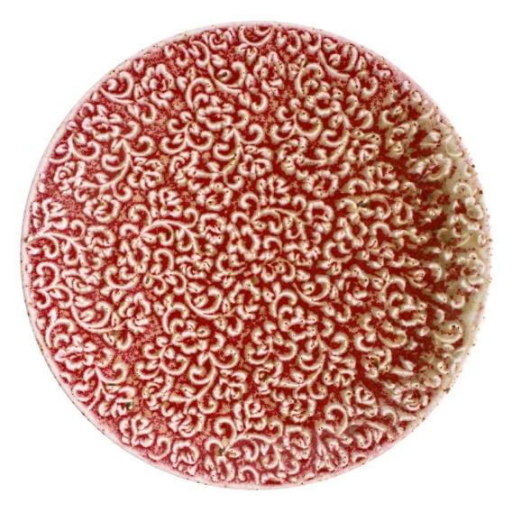 Talerz AMOUR to połączenie mistrzowskiego wykonania z dekoracyjnym stylem, który zachwyca od pierwszego spojrzenia. Jego powierzchnię zdobi wyjątkowy, tłoczony wzór inspirowany motywem mandali – pełen symetrii, finezyjnych detali i roślinnych akcentów. Delikatna gra barw – od ciepłej, rdzawo-czerwonej po kremowe tony – tworzy efektowną, a zarazem harmonijną całość, która wprowadza na stół nutę artystycznego charakteru.