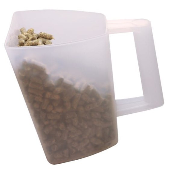 Przezroczysta miarka do paszy dla zwierząt, konia. pozwala na łatwe odmierzanie paszy dzięki wygrawerowanej skali bardzo wytrzymała, wykonana z wysokiej jakości materiałów wysokość z tyłu 17cm , przód 19cm odporna na zabrudzenia marka Vplast