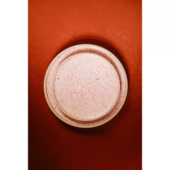 Talerz porcelanowy SWEET Verlo to połączenie nowoczesnego wzornictwa, rękodzielniczego charakteru i wyjątkowej trwałości. Jego subtelne, różowe tło zostało ozdobione delikatnym nakrapianiem w odcieniach burgundu i malinowej czerwieni, tworząc niepowtarzalny efekt artystycznej faktury. Każdy egzemplarz jest unikalny – drobne różnice w kolorze i strukturze sprawiają, że każdy talerz ma swój indywidualny charakter.